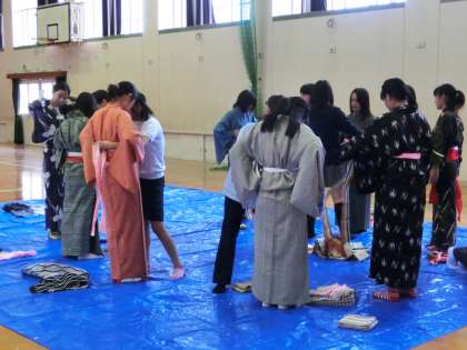 休日参観日の「おもてなし」へ向けて・・・3年着付け体験!