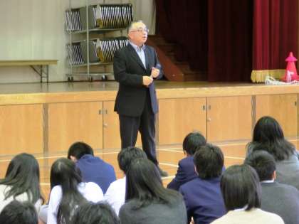 村上先生もそれぞれが将来の進むべき道を見極め、それに向かって努力してほしいというお話をしていただきました。ご自身が大学卒業後、いろいろな職種を経験し、その時に感じた事、そして”初志”を貫いて、27歳で中学校の先生になったこと、そして自身の教え子が教員になったり、自分の進路を切り拓いてくれていることの喜び、心のこもったとても素晴らしいお話だったと思います。