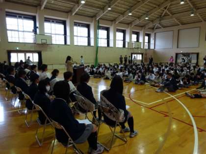 聞く態度もここ数年で一番良かったように思います。まったく私語もなく、真剣に最初から最後まで耳を傾ける生徒の姿がありました。