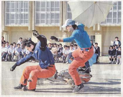 10月16日(水)の午後に実施した、「スケアード・ストレイト方式」による交通安全教室の様子が、昨日の読売新聞の夕刊に掲載されました。「スケアード・ストレイト方式」とは、プロのスタントチームが事故現場を再現して見せ、交通ルールの大切さを学んだり、恐怖を体験することで、それにつながる危険行為を未然に防ぐ交通安全教育の方法です。当日は、スタントマンの方の素晴らしい演技で、「本当に事故になったのでは・・・」と思い、冷や汗を感じるほどでした。新聞の記事は次のように書かれていました。)