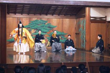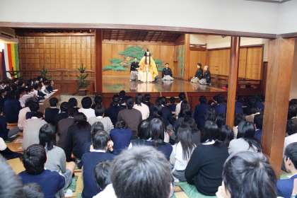 生徒たちは、目の前で案じられる素晴らしい能楽を堪能することが出来ました。学校のすぐ近くに、こんな素晴らしい能舞台があることを今まで知らなかった生徒もが多かったのではと思います。今回のような体験が出来たことは、地域文化を知る上でとても役立ちました。京都には様々な文化・芸術の伝統がありますが、それに触れる機会は逆に少ないようです。今回の能楽体験には、地方からの修学旅行生が多く参加しているとのこと。京都に住みながらとても残念なことです。これを機会に、自分たちの住むこの地域、そして京都の伝統・文化・芸術・建築物・祭礼・行事など、素晴らしい”財産”をを見つめなおしてみたいですね。