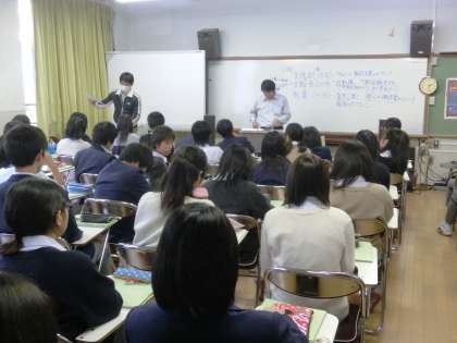 今日の6時間目に「事前指導」を行いました。校長先生から、明日からの体験で絶対に守らねばならないこと=時間を守る(絶対に遅刻をしない)、この5日間で自分はどんな目標を持って体験をするのかをしっかり意識すること、そしてあいさつと感謝の気持ちを忘れないことなど、充実した意義ある生きチャレのための心構えと激励をしていただきました。生徒たちは真剣な表情で話を聞いていました。