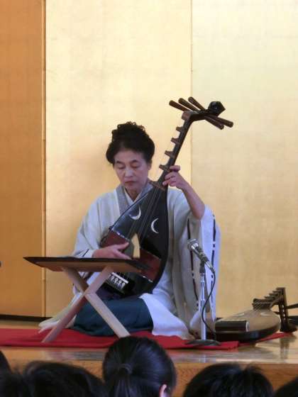 滅多に耳にすることのない華やかな筑前琵琶の音色と、朗々とした谷口先生の語りに、体育館にいた全員が魅了されました。とても貴重な体験が出来た1時間でした。本当に有難うございました。