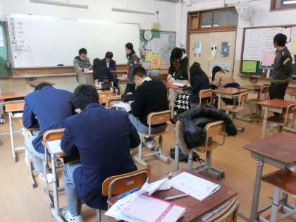 今日7日(土)の9時〜11時の2時間、12月の土曜学習を実施しました。11月は定期テスト前ということもあり、全学年で40名以上が参加していましたが、今日は10名余りの生徒の皆さんが参加し、先生方やボランティアの方々と学習に集中して取り組んでいました。普段はなかなか質問しにくいことも、このような機会にしっかりと質問し、「そうだったのか!」「わかった!」が体感できればと思います。参加した生徒の皆さんは、ほぼマンツーマンで指導をしていただき、ちょっぴり贅沢な時間を過ごせたのではないかと思います。