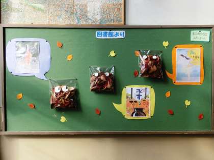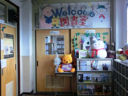12月の掲示物より・・・図書室と保健室 公開日 2013/12/09 更新日 2013/12/09 学校の様子 いつも展示を工夫していただいている図書室前も、すっかりとクリスマスムードに…。雪だるまが可愛いですね。廊下の本の紹介コーナーは、落ち葉で作ったフクロウが・・・。保健室前の掲示は、どこかで見たことのあるキャラクターが・・・。校内には和やかな雰囲気が漂っていますね。いつも素敵な掲示物や展示を有難うございます。