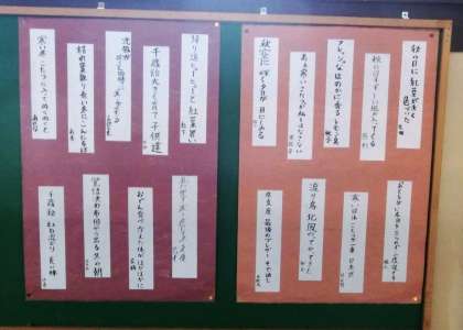3年生は、11月16日の「心からすまいる〜おもてなし集会」の際に、おもてなし茶会を盛り上げてくれた若の短冊が掲示されています。”これは和歌?”という作品もありますが、個性溢れる楽しいものばかりですね・・・!