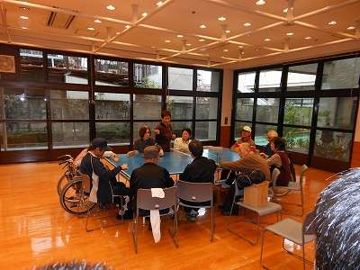 最初に会議室でセンターの職員の方より、利用される方の障害の種別(身体・知的・精神の三障害)や車いす、点字、白杖などの説明を聞き、その上でセンターの中にどのような設備があり、どんなプログラムがあるのかを教えていただきました。その後実際にセンターの中を見学して回り、入場者がどのように施設を利用されているのかを知ることができました。