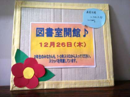 なお、休業中のため、北校舎東側の2年生の入り口は鍵を閉めています。2年生の人は、西側の1・3年生の入り口にスリッパを用意しているので、それを利用してください。多数の皆さんの来館を待っています!