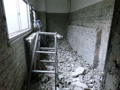 先日プリントでお知らせしましたが、老朽化に伴い本館のトイレ(1,2階)の改修工事が21日より行われています。冬休みに入り、便器等の取外しと、室内壁面のタイルを剥がす工事が行われています。工事現場からは、1日中ドリルの音が響いています。休み中に大きい音が出る工事を終わらせようと、業者の方が朝から夕方まで頑張っていただいています。来校された方や、生徒たちの安全面には十分に配慮していますが、騒音、通行やトイレの使用については、しばらくご不便をおかけします。2月末の完成まで、ご理解とご協力をお願いします。