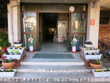 ■写真中・・・新年を迎えた烏丸中学校の玄関
