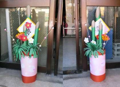 ■写真下・・・皆さんを迎える”ウェルカム門松”(先生方の手作りです)