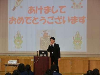 13日間の短かかった冬休みも終わり、今日から3期が始まりました。そのスタートとして、1時間目に体育館で全校集会を実施しました。冷え切った体育館でしたが、早朝から点火していただいていたガスストーブのおかげで、少しは暖かさを感じることが出来ました。