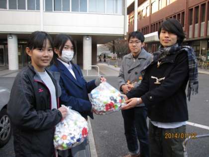 今年も1年間、多くの皆さんに「エコキャップ回収運動」にご協力いただきました。本当にありがとうございました。その結果、1月22日の段階で、”12,755個”のキャップが集まりました。そこで、1月22日(水)に、健康委員長と副委員長の2名で、京都府立大学を訪問し、環境サークル「エコプロジェクト」の方にキャップを渡してきました。多くの皆さんの気持ちは、業者を通じて800個あたり1本のワクチン(=16本)となり、ワクチンが必要な国に送られます。今後も、「エコキャップ回収運動」への協力を宜しくお願いします。