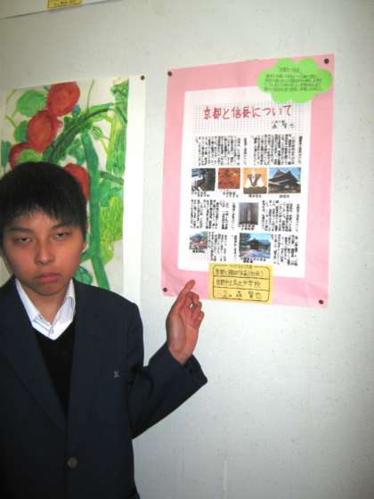 「小さな巨匠展」へ行ってきました! 公開日 2014/01/31 更新日 2014/01/31 学校の様子 今日3組は、京都市美術館別館で2月2日まで開催されている「小さな巨匠展」を見学に行きました。会場には、京都市内の育成学級や支援学校の生徒の様々な作品が多く展示してあり、他校から訪れた多くの生徒たちと一緒に興味深く鑑賞しました。M君の作品は壁新聞、ゆかた、ギターの3点で、どれも素晴らしい出来栄えでした。今日の作品展を参考にして、素敵な作品を作ってください。