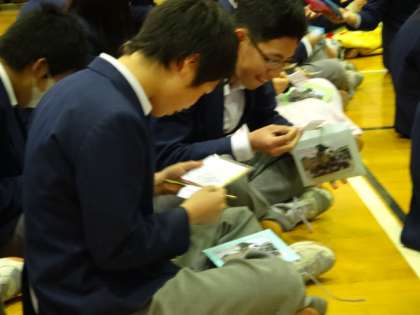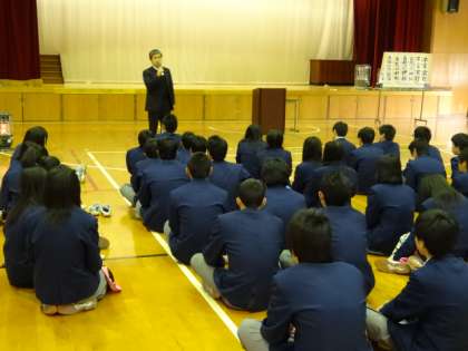受験生に校長先生と3年の先生が激励! 公開日 2014/02/05 更新日 2014/02/05 学校の様子 全校集会の後、3年生だけ体育館に残りました。 3年生の受験前日に校長先生が出張のため、本日ちょっと残ってもらって校長先生から激励の言葉を頂きました。 激励の言葉と共に、カイロに3年の先生方の激励メッセージと学年全員の写真が同封された物がみんなに配布されました。 仲間と共に・先生達の熱い思いと共に、受験生達よ!健闘を祈る!!!!