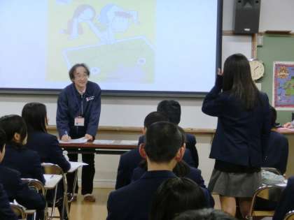 今日21日の午後、3年生は成逸包括支援センターの皆さんのご協力で、「認知症サポーター講座」を受講しました。