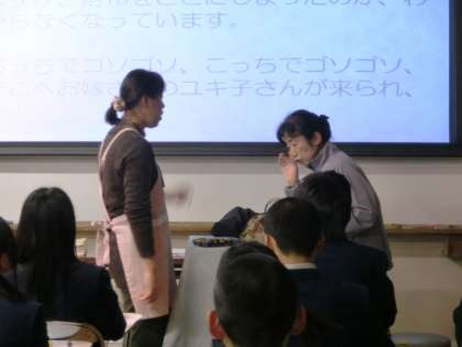 次は寸劇です。包括支援センターの職員の方と”名女優”後藤先生とで「ある日の出来事・・・」という劇を演じていただきました。