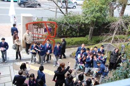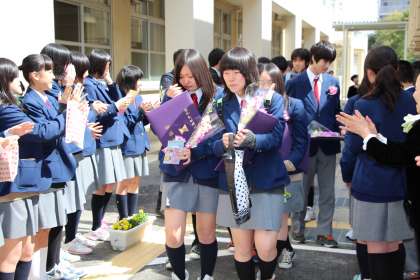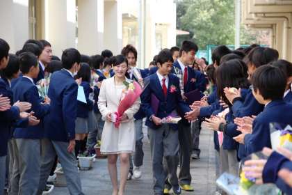 心に残る卒業式(その3) 公開日 2014/03/14 更新日 2014/03/14 学校の様子 最後の学活を終えた後、卒業生の見送りです。プランターを並べた花道を通って、3年間通いなれた学校や友だち、先生方とのお別れです。胸一杯の思い出を、明日からの新しい一歩に活かしてください。おめでとう、45名の卒業生!