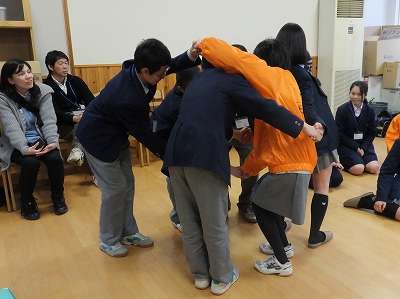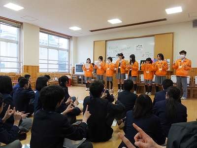 まずはアイスブレーキングでの自己紹介や人間知恵の輪というゲームを通して、緊張をほぐした後、積極的にそれぞれの生徒会の取組を紹介し合い、とても活気あふれる交流会となりました。