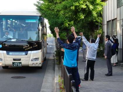 バスに乗車。いざ関空へ! 公開日 2014/05/11 更新日 2014/05/11 3年修学旅行 一行は、さっそくバスに乗車し、関西空港へと出発しました。 学校待機の先生や保護者の方に見送られる中、わくわくの期待に目を輝かせたみんなはこの三日間を心に描いている事でしょう。素敵な旅行になるよう祈っています。また帰ってきたら、たくさんの思い出話を聞かせて下さいね!