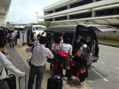 この後、グループ毎に分かれてタクシー研修を行い、沖縄南部を散策する予定です。平和公園やひめゆりの塔を見学し、最終的には5時に本日の民泊地であるグスクロードに集合の予定です。ではみんな!いってらっしゃーい!