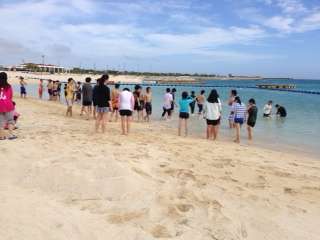 ビーチドッヂボールで盛り上がってます。