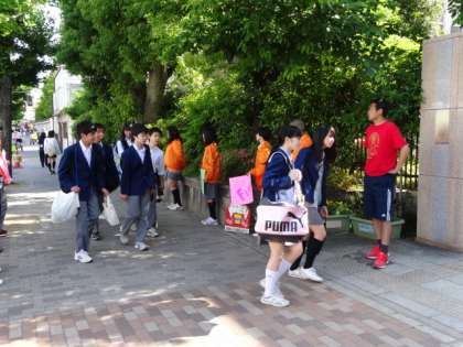 毎月1週間程度校門前にて、あいさつを行います。今年は生徒会本部だけでなく、他の委員会にも協力してもらってさらに輪を広げていこうとしています。毎年、少しずつではありますが、声を出せる人も多くなってきました。この一年間でさらに運動が前進することを期待しています。