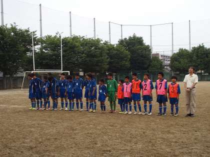 7月13日(日)西京極中学校グラウンドで,夏季大会サッカーの部の公式戦が行われました。対戦相手は伏見の大淀中学校。わが烏丸中は開始後,終始攻勢に出た試合展開で,見事に3点を奪い,ゲームの主導権を握って前半を終えました。後半も,給水タイムまでは3−0をキープしていましたが,最後の10分ほどの間に大淀中の猛反撃を受け,残念ながら4点を奪われて敗退しました。