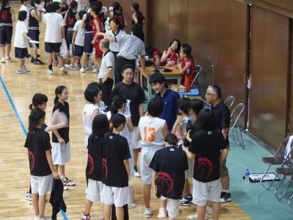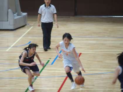 7月21日(月)西京極のハンナリーズ アリーナ(西京極市立体育館)で,女子バスケ部の3回戦が行われました。相手は伏見中学校。3コートで同時に熱戦が行われており,体育館はかなりの熱気に包まれていました。烏丸中は序盤から相手にリードを許しながらも,第4Qの最後のさいごまで,体力の限界までよく健闘しました。結果は39−59でした。チャンスにシュートが決めきれない場面が目立ったのが残念でした。