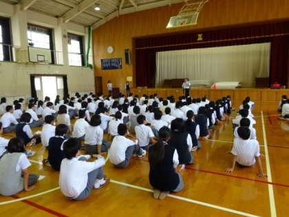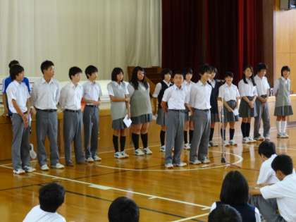 2期がスタート! 公開日 2014/08/25 更新日 2014/08/25 学校の様子 短かった?!夏休みも終わり、今日から2期がスタートしました。 提出物や夏休み中の話の後、さっそく休み明けテストがありました。 続いて、今年初めての生徒会がすべて運営する第一回生徒集会が開かれ、執行部から様々な提案がされたあと、各部活動の夏季選手権大会の報告と、新キャプテンからの抱負が話されました。