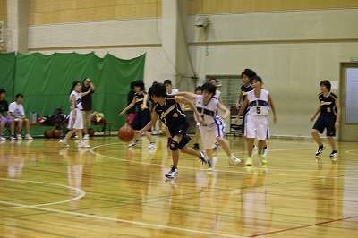 緊張して、力が出し切れないことが多いので心配でした。第1Qが始まって立て続けに5点取ったものの、すぐさま5点返され、シーソーゲームの様相を見せていました。しかし、こころから緊張感が取れたのか、烏丸のいい動きが次々と出始め、シュートの数で相手を遙かに上回り、リバウンドもしっかりと取って、点数を重ねていきます。相手のパスをブロックしたりカットしたり、ディフェンスもよくなり、相手にシュートさせません。第1Qが終わってみれば19−7のリード、第2Qはさらに絶好調でほとんどボールを烏丸が支配し40−8の差をつけます。第3Qも順調に差を広げ、65−10、第3Qは終盤アクシデントもあり、少し得点を許しましたが、最後は85−18の快勝でした。