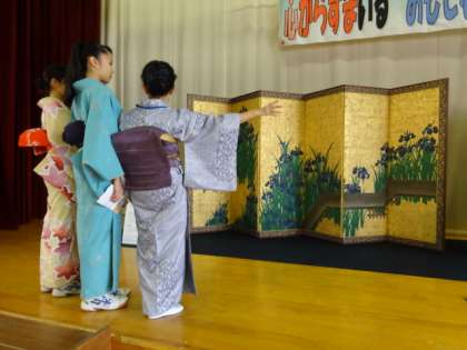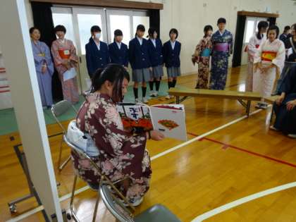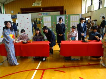 おもてなし集会では、見えないところで、たくさんのボランティアや支援者が助けて下さいました。とりわけ、着付け指導に関わって頂いた保護者・地域女性会、お茶のお手伝いをしていただいたPTAをはじめとする保護者の方々、そしてお隣の鴨沂高校からも茶道部のみなさんが駆けつけて下さいました。心より御礼申し上げます。