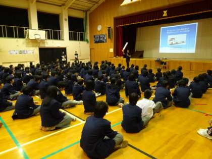 NPO法人京都禁煙推進研究会・社団法人京都府医師会・京都府立医科大学地域保健医療疫学教室と、教育委員会体育健康教育室から講師をお招きし、タバコの害や禁煙について詳しいスライドによる説明を受けました。外国ではほとんどの国で公共の場所での禁煙を行う法律があるのに、日本は無いこと、タバコのパッケージには害が記されてたり、コンビニでも目隠しされたところで販売されていること、日本はかっこいいパッケージですごくオープンに販売されていること、値段も日本はとても安い事などから、タバコに手を出してしまう人が多いことなどが紹介されました。