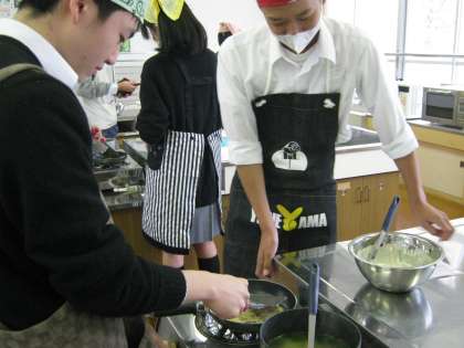 2年生調理実習 公開日 2014/11/25 更新日 2014/11/25 学校の様子 家庭科で2年生の調理実習が行われました。 2年生は先週、韓国の食や言葉について学習し、国際理解を深めました。 今日は、実際に「チヂミ」と「トックスープ」を作り、韓国の食を味わいました。 日本のお好み焼きに似た「チヂミ」、そしておもちに似た「トック」おいしくいただきました。