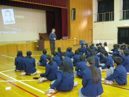 1年の国際理解学習はアメリカ出身のポールエヴァンズさんに来て頂き、様々なお話をして頂きました。