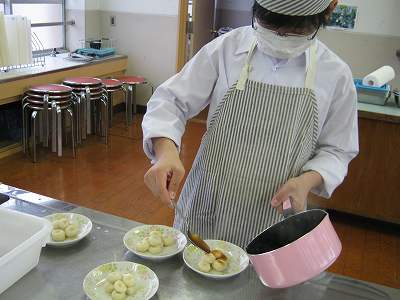 1年生調理実習 公開日 2015/01/31 更新日 2015/01/31 学校の様子 一年生が初めての調理実習で「豆腐白玉のみたらし団子」を作りました。 小学校と違って家庭科の授業は1時間なので、その中でテキパキ考えながら、一人一人が積極的に実習する必要があります。 初めての豆腐の「手の上切り」も経験し、もちもちの白玉だんごに手作りのたれをかけておいしくいただきました。 準備をスムーズに行い、片付けも協力できたので、次回につながる実習となりました。