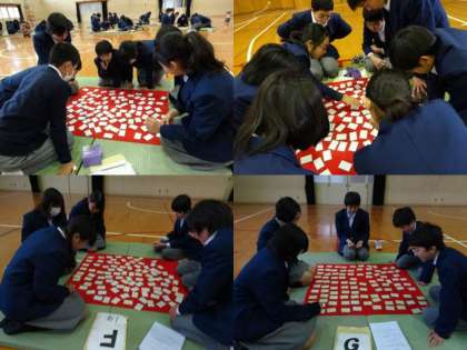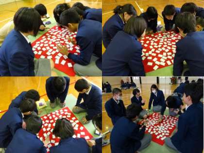 年明けから朝読書の時間に「朝百人一首」で個人練習をしたり,クラスやグループで