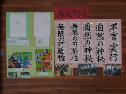 烏丸中学校の校区にある,室町小学校と西陣中央小学校の両校で行われた,作品展に烏丸中学校の生徒作品を展示していただきました。