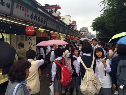 浅草散策・あ、雨が… 公開日 2015/05/29 更新日 2015/05/29 3年修学旅行 浅草散策の様子です。 雨が降ってきました。どうなることやら… その後、浅草での班別行動を終えて、隅田公園に集合しました。これから隅田川クルーズです。少し雨に降られましたが、何とか雨も上がったようですよ。