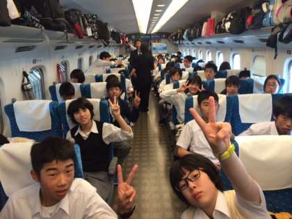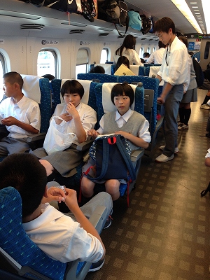 京都に向けて出発! 公開日 2015/05/30 更新日 2015/05/30 3年修学旅行 14:00発の、のぞみ231号に乗車しました。京都には16:17に到着します。三日間の疲れで全員寝ているかと思いきや、やはり彼らは疲れ知らずで、おやつを食べながら、カードゲームに興じています。