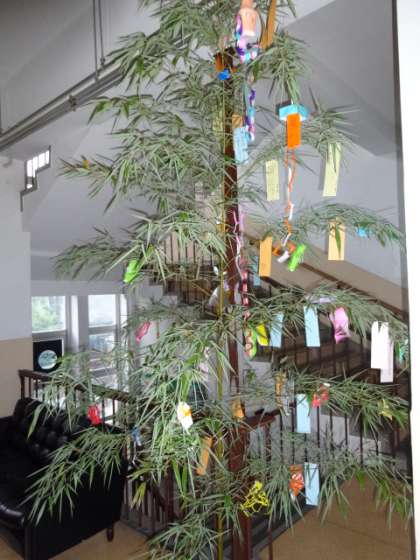 また同志社継志館で行われる七夕コンサートの飾り付けにも七夕の笹が並べられ、全員でそちらの方にも飾り付けと願いを記した短冊をお渡ししました。
