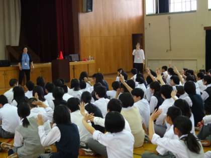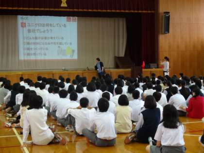 今日の3時間目は、ユニクロが主催する、取り組みに烏丸中学校として参加することになり、社員の方をお招きして講義をして頂きました。