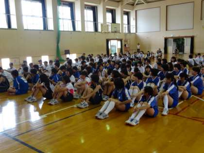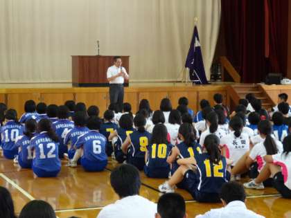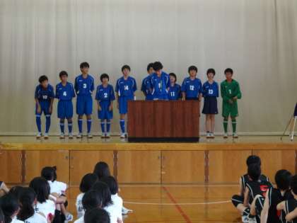 また応援の立場からの代表生徒の激励、校長先生の激励と続き、最後は選手一同円陣を組んで気合いを入れました。