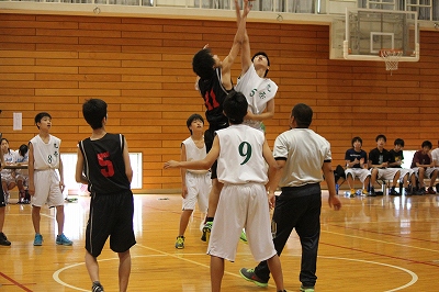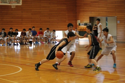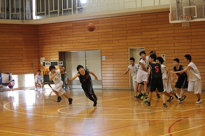 花山中学で、男子バスケット部が、九条中学校と対戦しました。