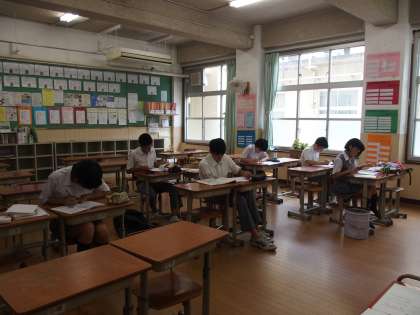◇7月27日(月)から3日間,『夏季学習会』が開かれています。9時から10時50分までの2時間構成で行われています。あす29日(水)の3日目だけは,1時間だけの実施になります。3学年ともに,学習会参加者は熱心に学習に取り組んでいました。