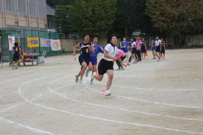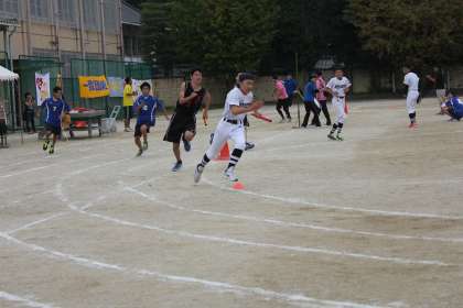 午前の部の最後はクラブ対抗リレーでした。 それぞれの部が部の名誉にかけて、全力でバトンを繋いだ様子です