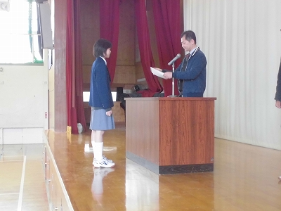 後期生徒会本部役員ならびに各種専門委員長が決まり、認証式が行われました。また続いて各クラスの後期学級役員も選出が出そろい、認証されました。