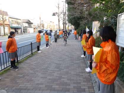 朝の声かけ運動 公開日 2016/01/07 更新日 2016/01/07 学校の様子 今年最初で、今年度最後の、PTA朝の声かけ運動が行われ、寒い中朝早くからPTAの方々が集まって下さり、朝の声かけを行いました。 しばらくして生徒会の朝の挨拶運動も加わり、大勢で賑やかな場となりました。 学校評価などのアンケート結果からも、ここ数年、年ごとに「挨拶が出来る」生徒の数が増えつつあります。生徒会・PTAの地道な活動のたまものですね。ご苦労様でした!