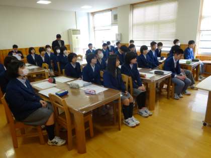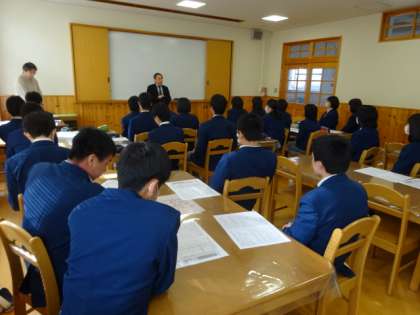 本日の6限は受検予定のみんなに集まってもらって、私学受験時と同様、まずは校長先生の激励の言葉、そして宮本先生から受検上の諸注意がされました。