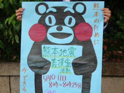 5月9日(月)〜11日(水)朝,8:00〜8:20本校玄関前で生徒会が中心となり,「熊本地震」に対する義援金の募金活動を行っています。